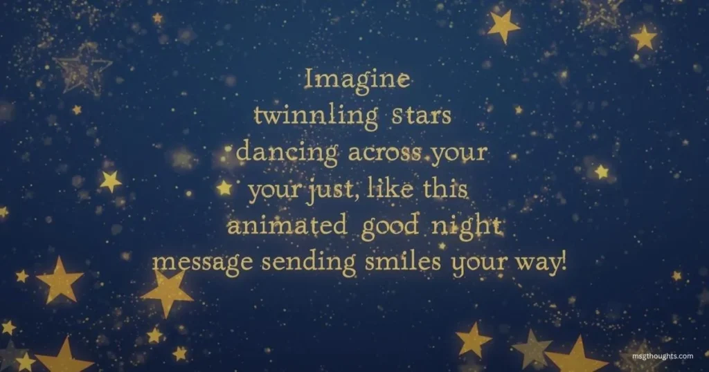 1. “✨ Imagine twinkling stars dancing across your screen, just like this animated good night message sending smiles your way. 🌙😊”