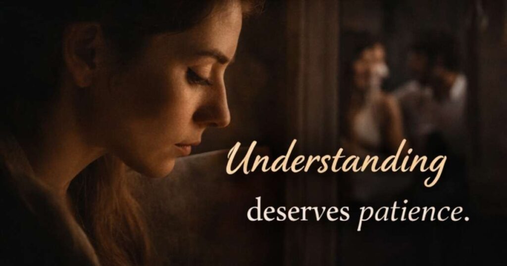 A cuckquean caption is a short reflective line that focuses on emotional awareness, curiosity, trust, and psychological perspective rather than explicit storytelling.