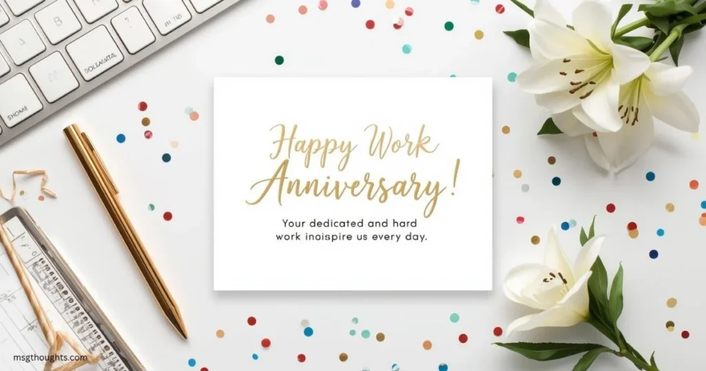 - “Wishing you continued success on your work anniversary! Your dedication lifts everyone around you.”