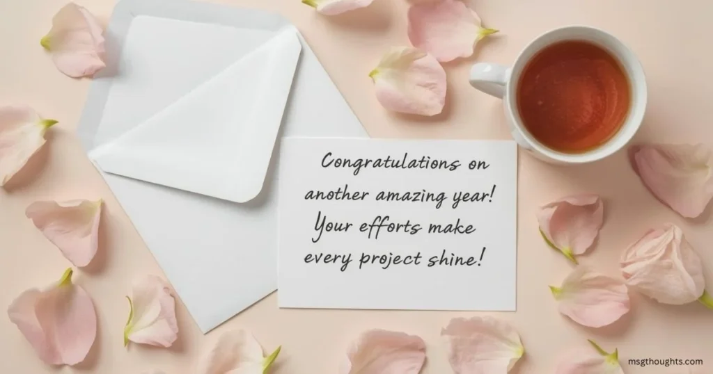 - “Congrats on another year of great work! Wishing you many more successful years ahead.”